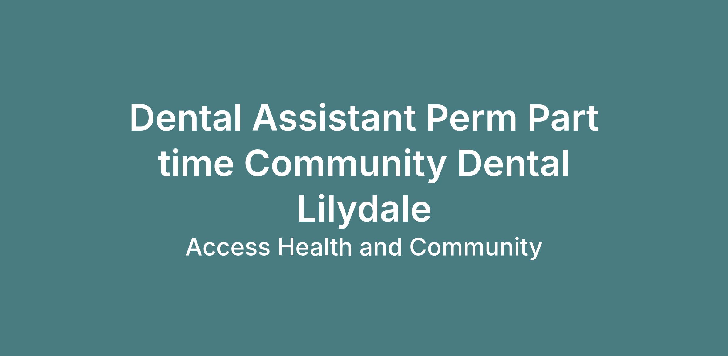We are seeking Part time or casual Dental Assistants to join our Community Dental team at our Lilydale and Ashburton clinics. Our Community Dental Program provides high quality public oral health services in a supportive, multidisciplinary environment, focused on equity, prevention, and patient-centred care. This role is ideal for someone looking for stable employment, meaningful work, and the flexibility of work-life balance without the pressures of private practice.